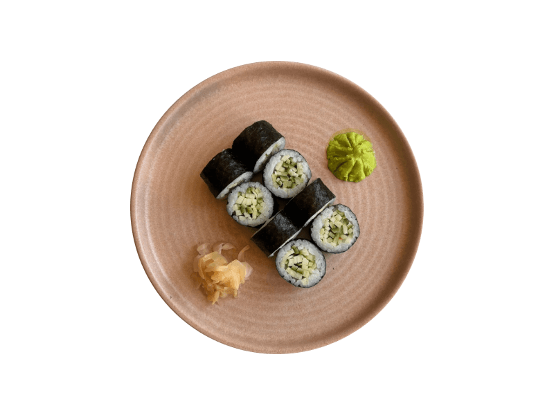 Avacado, salatalık, kuşkonmaz, havuç, teriyaki sos üstü wakame veya Akdeniz yeşillikleri ile